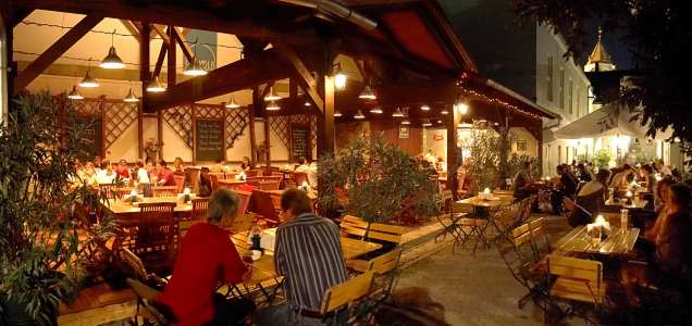 So hält das „Gwölb“, was der Eingang über die runden Stufen schon verspricht: Die heimelige Kelleratmosphäre bei Kerzenlicht, der gemütliche Gastgarten und die freundliche Bedienung sorgen für die Wohlfühl-Atmosphäre, in der man Kultur so richtig genießen kann.